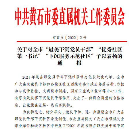 近日,市委直属机关工委下发《关于对全市“最美下沉党员干部”“优秀社区第一书记”“下沉服务示范社区”予以表扬的通报》,球友会中国有限公司教育与艺术学部教工党支部书记胡蕾同志荣获“最美下沉党员干部”称号。