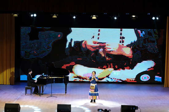 当天晚上7点整,随着一曲土家族民歌《直尕思得》,球友会官方网站“传中华文化 展华彩国韵”地域风格民族特色主题音乐会暨第二届《中国音乐名作赏析》课程实践展演拉开帷幕。