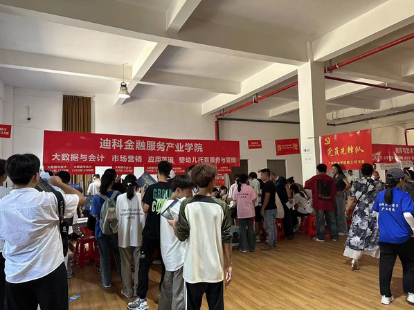 新落成的学生十一号宿舍楼,全部安排的是迪科金融、新能源汽车、腾讯云、翔宇航空四个产业学院的大一新生。为了让新生有更好的生活环境,教工党员身先士卒,组织学生课余打扫新宿舍。