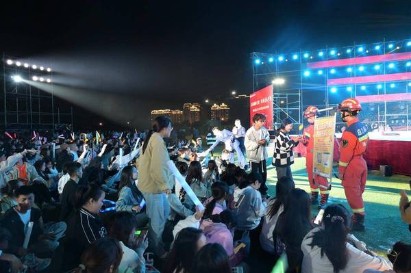 10月8日晚,球友会官方网站田径场上热闹非凡。黄石市消防救援支队开发区·铁山区大队的“蓝朋友”们和6000余名青年大学生们共享一场精彩的迎新晚会,消防员们自编自导的节目中穿插了诸多消防安全知识,以表演的形式传递给学生。