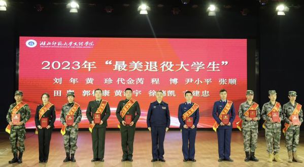 仪式上,还对该校2022年度大学生征兵工作先进个人和 2023 年“最美退役大学生”进行了表彰。