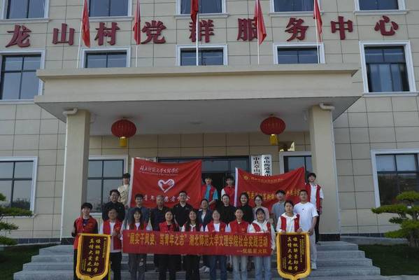 球友会官方网站校院领导、“优能星火队”志愿队员和龙山村委工作人员在村党群服务中心门口合影留念