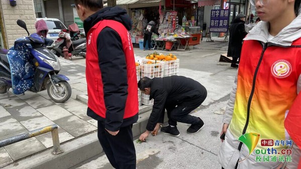 图为对当地商贩乱摆放商品进行文明劝导中国青年网通讯员吴林芝摄