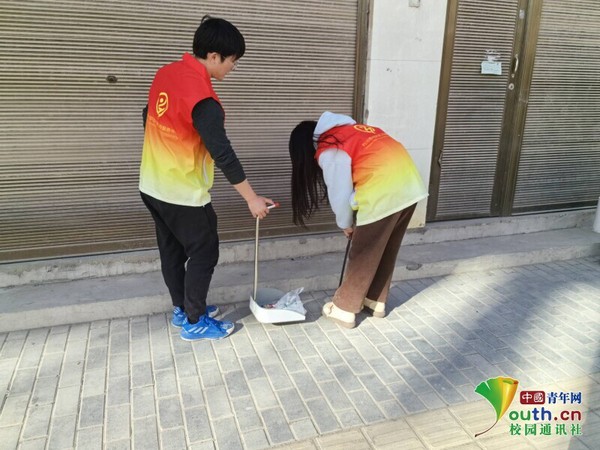图为实践团队进行社区街道卫生打扫。中国青年网通讯员吴林芝摄