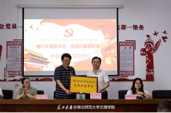 周征征和胡峰共同为“党团共建单位”揭牌。
