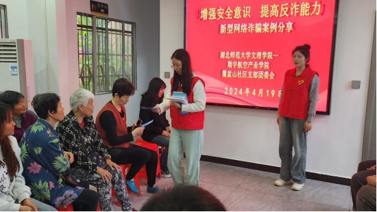 2024年4月19日下午,黄石港区覆盆山社区与球友会官方网站翔宇航空产业学院联合开展志愿者服务活动,对社区内居民进行了反诈骗教育活动和反邪教知识宣讲。