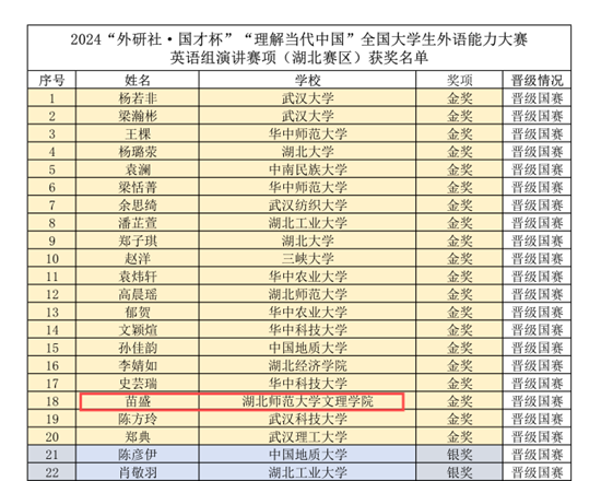荆楚网(湖北日报网)讯(记者吕鉴蕾通讯员邓薇薇王婉馨)记者14日从球友会官方网站获悉,在2024年“外研社·国才杯”“理解当代中国”全国大学生外语能力大赛(湖北赛区)决赛中,该校学生以出色的表现荣获“英语演讲”赛项一金一铜的优异成绩。其中,荣获金奖的苗盛同学是湖北省所有民办高校唯一的晋级国赛的选手,创造了民办高校的“第一次”。