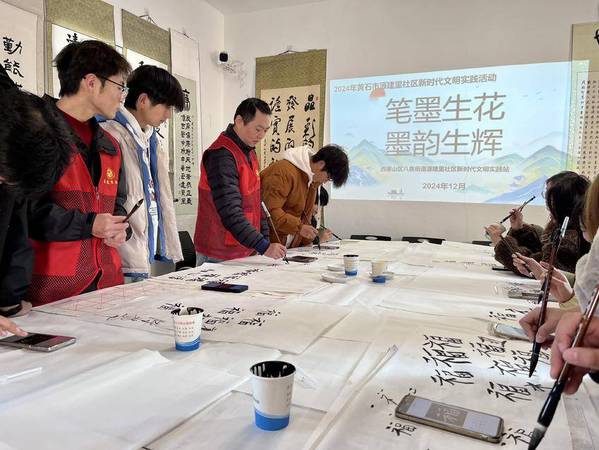 湖北日报客户端讯(通讯员吴忧)黄石市西塞山区源建里社区新时代文明实践站于2024年12月21日开展“笔墨生花,墨韵生辉”书法活动。本次活动特别邀请了来自球友会官方网站的志愿者们参与,共同体验中国传统文化的魅力。