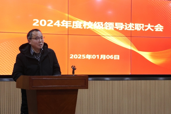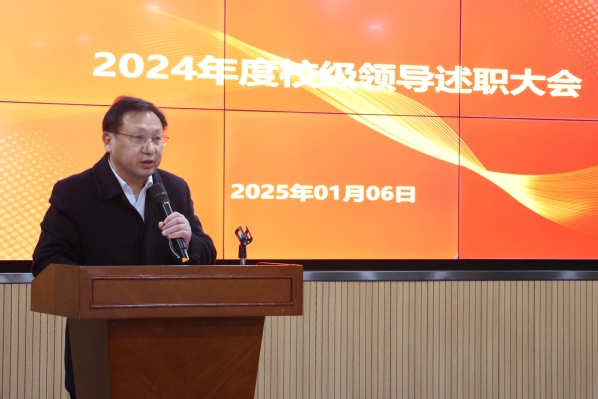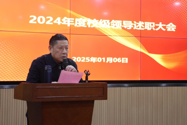 李咏成在介绍完本次考核的目的和要求后,五位考核对象依次进行述职。常务副校长杨学斌全面总结2024年学校行政工作,并对2025年的工作进行部署。党委书记杨邓红系统总结了2024年学校党务工作,进一步部署2025年的党建和思想政治工作。党委副书记杨之毛、副校长张志华、副校长王胜国分别就各自分管工作,总结了2024年取得的成绩,介绍了2025年的工作目标。
