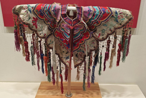 在武汉博物馆,一件代表性的云肩让小队所有人屏息驻足,这件以“天圆地方”为构型的绣品,用色多达二十八种,金线盘绕的如意云纹间游走着五毒纹样,暗合楚人“乘云气,御飞龙”的浪漫想象。