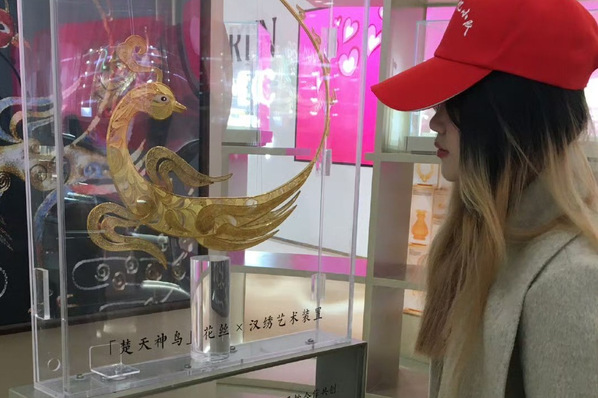 在武汉万象城,潮宏基汉绣×花丝镶嵌跨界艺术特展让队员们感受到了非遗的时尚蜕变。小队聚焦汉绣与花丝镶嵌的工艺融合案例,研究传统纹样如何通过现代设计转化为时尚首饰与艺术装置。这一创新模式为汉绣开拓了高端消费品与艺术收藏的新路径,展现了非遗“活化”的无限可能。
