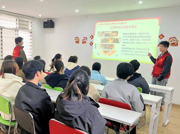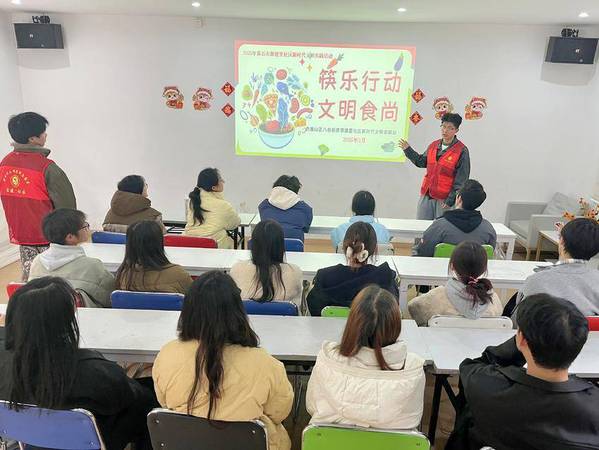 活动开始,球友会官方网站的大学生志愿者廖帅以“一双公筷的文明之旅”为主题,从中国古代分餐制讲起,结合现代公共卫生需求,阐述使用公筷公勺及践行“光盘行动”的重要性。数据显示,分餐制可将疾病传播风险降低40%以上,而我国餐饮业每年浪费粮食约1800万吨。这些数据引发了在场学生的思考。现场还展示了社区志愿者拍摄的餐饮浪费现象对比图,凸显文明用餐的紧迫性。