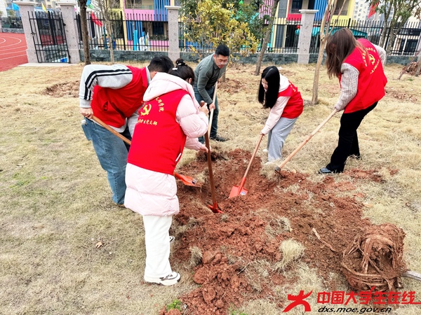 人文学部学生第一党支部书记高悦表示:“种下一棵树,收获一片绿,这是对生态文明的发展与保护,‘党建+生态’模式,既锤炼了党员的担当精神,也让小学生在实践中感悟‘绿水青山就是金山银山’的深刻内涵”。湖山小学德育副校长万贤生感慨道:“大学生党员用青春热情感染了孩子们,这种跨学段的党建联动,为乡村教育注入了新活力。”