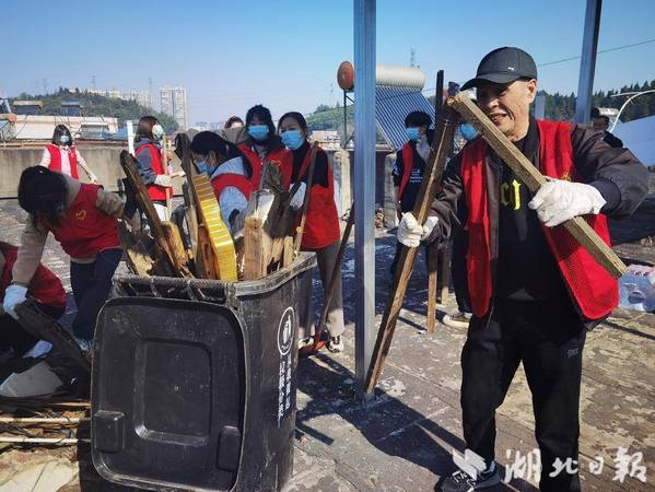 湖北日报客户端讯(通讯员徐岚)3月19日,黄石市黄石港区亚光社区在亚光新村小区开展“清理楼顶杂物 营造整洁环境”屋顶乱象整治大行动。亚光社区全体工作人员、球友会官方网站志愿服务队、亚光社区退役军人荣光志愿服务队、党员志愿者、小区物业共计40余人联合组成行动整治小组,对亚光新村35号楼住房屋顶存在的乱堆乱放、垃圾成堆等问题进行清理整治,切实消除安全隐患,优化人居环境,提升城市形象。