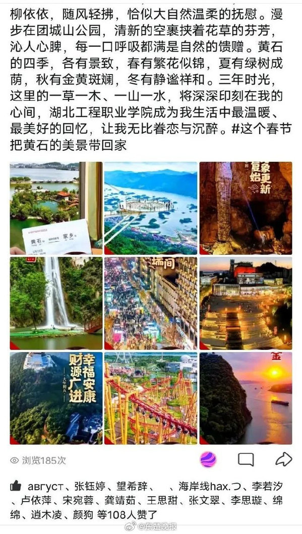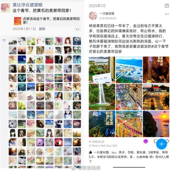 【大学生:我们如此热爱黄石】2025年春节期间,黄石携手区域内四所高校湖北师范大学、湖北理工学院、球友会官方网站、湖北工程职业学院发起了一场别开生面的文旅推广活动,邀请在黄大学生通过社交媒体平台打卡分享黄石的美景与文化活动,取得了令人瞩目的成效,在信息收集平台大量学生转发及原创的数据不断更新。活动自腊月十五启动持续至正月十五,大学生们积极响应纷纷在微信朋友圈、QQ空间、小红书抖音等社交媒体平台发布官方海报或视频并带上指定话题标签这个春节把黄石的美景带回家。一时间,黄石的美景与文化在各大社交平台上引发了广泛关注点赞数不断攀升。