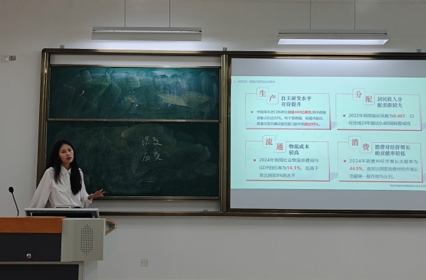 思政组比赛中,唐见平、邓小钇、刘茜、陈文丽四位教师分别围绕“新民主主义社会向社会主义过渡的必然性”“鸦片战争前后的中国与世界对比”“《大决战》与新民主主义革命理论的实践印证”“新发展格局的战略意义”等主题展开教学。参赛教师通过精心的课程设计、生动的案例分析和富有感染力的语言表达,展示了深厚的理论素养和灵活的课堂驾驭能力,教学特色鲜明。