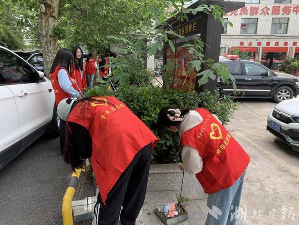 活动现场,社区志愿者与高校青志队成员们热情高涨,迅速投入到清扫工作中。大家兵分两路,一部分志愿者前往10个单元楼道,针对楼道内堆积的杂物、灰尘以及墙壁上的小广告展开清理。他们手持扫帚、拖把、铲子等工具,认真细致地打扫每一个角落,不放过任何一处卫生死角。经过耐心清理,原本杂乱的楼道变得干净整洁,焕然一新。另一部分志愿者则负责清理花坛垃圾。他们穿梭在花丛间,用夹子、垃圾袋等工具,将花坛内的废纸、烟头、塑料瓶等垃圾一一捡起。尽管花坛中蚊虫较多,清理难度较大,但志愿者们毫无怨言,齐心协力让花坛重新恢复了往日的生机与美丽。