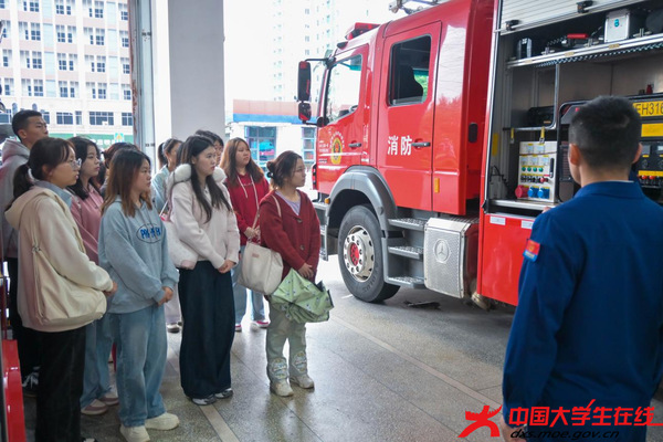 在消防站肖指导员和张班长的带领下,同学们依次参观了消防车辆装备区、荣誉厅和消防员宿舍。在装备区,张班长详细讲解了液压破拆工具组在救援中的关键作用,并让同学们亲手触摸感受了救援服的隔热材质。同学们详细了解各类救援装备的性能与用途,近距离感受消防救援队伍的专业作风和严明纪律。在荣誉厅,肖指导员结合一张张抢险现场照片,向同学们讲述了成功营救被困群众的真实经历,大家在事迹展板前驻足良久,深受触动。随后,大家走进消防员的生活休息区,深入了解队伍日常管理与文化建设情况,对消防站“劳逸结合、科学训练”的管理理念有了更为直观的认识。消防员现场演示了日常训练科目和应急处置流程,展现出过硬的专业技能和高度的职业素养。