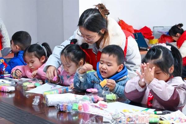 创作环节里,孩子们热情高涨。围绕“我的一天”主题,大家用稚嫩画笔勾勒生活点滴;“秋日时光”粘土手工课上,五彩粘土经揉、搓、捏、贴,化作生动立体的秋景作品。作品展示时,孩子们主动分享创作灵感,志愿者及时给予肯定与鼓励,让自信笑容绽放在每个孩子脸上。