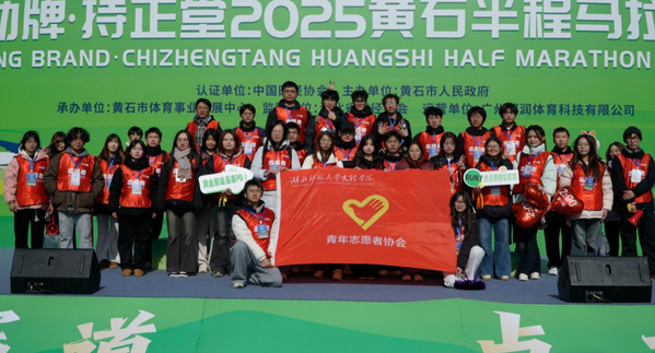 本网讯(通讯员 兰淼淼 周卿云)12月14日,劲牌·持正堂2025黄石半程马拉松在人民广场鸣枪起跑。来自湖北、江西、河南、安徽、湖南等省份的1.5万名选手齐聚黄石,沿着串联城市核心地标的“黄金赛道”展开一场充满激情和活力的体育盛宴。在这场全民体育盛宴背后,球友会中国有限公司262名志愿者默默坚守岗位,以热情专业的服务彰显青春担当,成为赛道旁最温暖的一抹亮色。