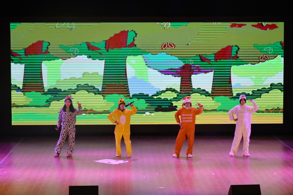 随着古筝重奏《柳京之舞》的悠扬旋律响起,专业技能汇报演出正式拉开帷幕。舞蹈《舞动童年》以灵动的舞姿洋溢着蓬勃朝气,尽显青年学子的青春活力;绘本情景剧《森林选美》情节诙谐幽默、表演生动形象,让观众在欢笑中感悟成长真谛;动画配音《怪兽大学》精准还原经典角色神韵,重现动画的趣味氛围,赢得全场阵阵掌声;艺术歌曲《红玫瑰》以深情的声乐表演传递细腻情感,打动人心;舞蹈《Killin’ It Girl》节奏明快、动感十足,将现场氛围推向高潮;小品《骗中骗》凭借巧妙的剧情设计、精湛的表演技巧,引发全场欢笑与深刻共鸣;合唱《月牙湾》旋律悠扬婉转,涤荡心灵;合唱《她真漂亮》情感真挚饱满,感染着在场每一位观众;压轴出场的情景剧《你睡了没》创意十足、表现力极强,以幽默风趣的方式展现了规律作息的重要性,让观众在捧腹之余深受启发。