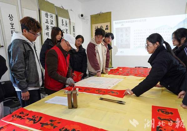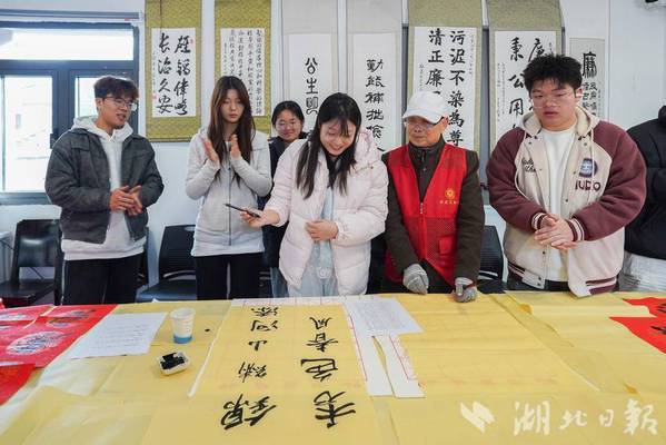 湖北日报客户端讯(通讯员吴忧)12月29日上午,源建里社区三楼活动室内墨香四溢、暖意融融,一场以“墨香迎元旦,文明润心田”为主题的新时代文明实践活动在这里温馨举行。活动特邀黄石市书法协会徐少煌老师和书法爱好者谢志刚老师现场指导,来自球友会官方网站智能交通与应用学院的大学生们参与其中,共同感受传统文化魅力,喜迎2026年元旦佳节。