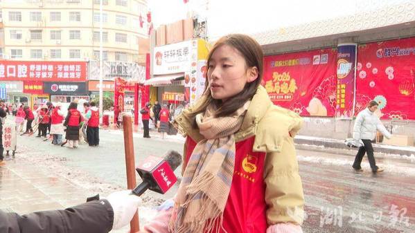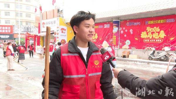 湖北工程学院返乡大学生吕星语:“我是一名大学生志愿者,参加本次‘返家乡’社会实践扫地除雪活动,既可以为家乡的父老乡亲们清除出行的障碍,还可以在实践中培养责任意识和奉献精神,为家乡奉献出自己的一份力量。同时也可以为返乡青年起到一个示范带动作用。”