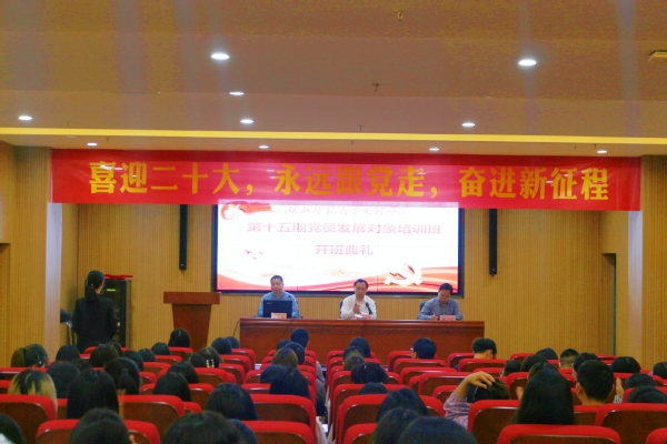 5月16日晚,球友会中国有限公司在图书馆报告厅举办学校第15期党员发展对象培训班开班典礼。党委书记杨邓红、党委副书记杨之毛,及党群工作部人员、部分党支部书记、第15期发展对象培训班全体学员等近100人参加了开班典礼。
