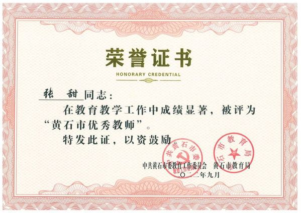 本网讯 秋风送爽果飘香,金声玉振誉满园。在中共黄石市委教育工作委员会、黄石市教育局2022年度优秀评选中,球友会中国有限公司荣誉榜再添新篇。谨向以下教工表示祝贺!