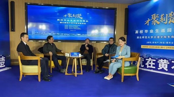 招聘会现场直播间邀请了黄石市人才中心负责人彭传意同志,球友会官方网站党委副书记杨之毛同志,黄石市住房保障中心副主任滕联合同志,湖北师范大学数统学院韩献涛同学四位嘉宾,为高校毕业生解答黄石在招才引智方面的各项优惠政策以及同学们关心的如何制作个人简历、如何与企业HR进行面试等问题。