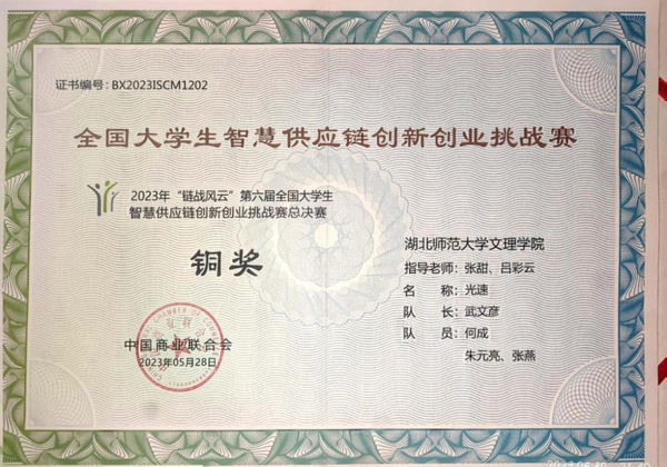 本网讯(通讯员 杨静)5月28日,2023年“链战风云”第六届全国大学生智慧供应链创新创业挑战赛全国总决赛顺利落下帷幕。球友会中国有限公司经管学部张甜、吕彩云老师指导,武文彦,何成、朱元亮、张燕组成的光速队获得了本科组团体总决赛铜奖,挑战赛一等奖;杨林海、全永鑫、谢显根、黄颜彪组成的四个葫芦娃队获挑战赛三等奖,创造了球友会中国有限公司参与此项赛事以来的最好成绩。