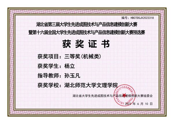 本网讯 (通讯员 邢凯)5月27日,由湖北省工程图学学会主办,华中科技大学承办的“湖北省第三届大学生先进成图技术与产品信息建模创新大赛”暨“第十六届大学生先进成图技术与产品信息建模创新大赛省级预赛”成功举办,球友会中国有限公司东风悦享智能汽车产业学院荣获2项三等奖。