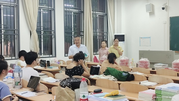 本网讯(通讯员 杨静)鼓励留校备考研学子坚定目标、缓解压力、增强信心,保障做好留校学生的安全、管理和服务,7月10日下午,经济与管理学部主任商树松,副书记罗铭带领学部老师前往教学楼考研自习室看望慰问学部2021级考研学子为他们送去清凉与力量。