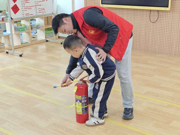 活动现场,志愿者首先组织了一场消防应急演练。随着警报声响起,30余名小朋友在志愿者的引导下,用湿毛巾捂住口鼻,弯腰低姿快速通过模拟浓烟区域,有序撤离至安全地带。演练结束后,志愿者通过问答互动、实物展示等方式,向孩子们详细讲解了灭火器的使用方法、火灾逃生要点等消防安全知识。