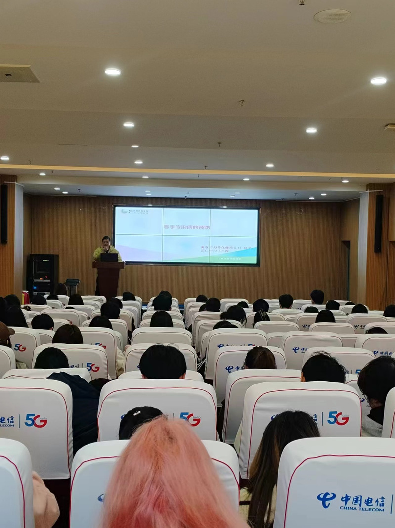 本网讯(通讯员严骅是各种传染病的高发季节,为预防校园传染病的发生,增强师生对春季传染病防控知识的了解,3月20日,后勤保卫部邀请黄石市妇幼保健院和汪仁卫生院工作人员来校进行春季传染病预防宣传教育活动。
