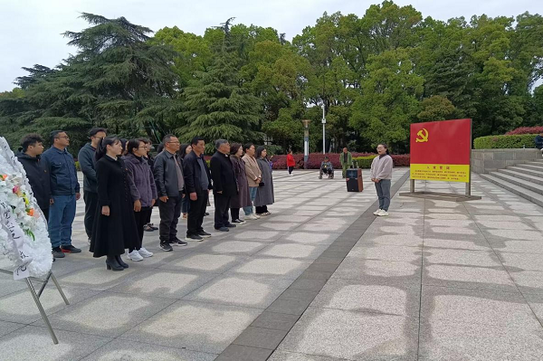 2023年4月5日,时值清明节,经济与管理学部教工党支部组织全体党员教师和入党积极分子前往湘鄂赣边区鄂东南革命烈士陵园,开展以“深悟践行二十大,追思缅怀忆先烈”的党史学习教育主题实践活动。重温红色革命峥嵘岁月,感受革命先烈不屈不挠的斗志和无私无畏的精神,传承红色基因,厚植理想信念。