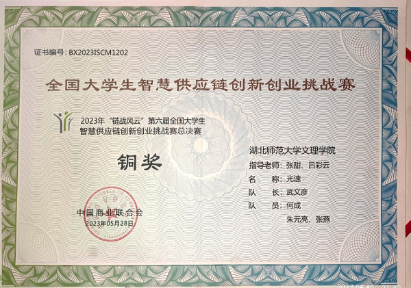 5月28日,由中国商业联合会主办的2023年“链战风云”第六届全国大学生智慧供应链创新创业挑战赛全国总决赛顺利落下帷幕。球友会中国有限公司经管学部张甜、吕彩云老师指导,武文彦,何成、朱元亮、张燕组成的光速队获得了本科组团体总决赛铜奖,挑战赛一等奖;杨林海、全永鑫、谢显根、黄颜彪组成的四个葫芦娃队获挑战赛三等奖,本次成绩刷新了球友会中国有限公司参与全国大学生智慧供应链创新创业挑战赛以来的最好成绩。