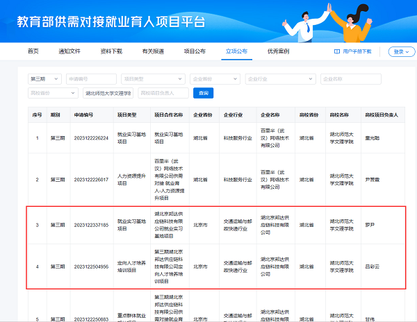 近日,教育部公布了第三期供需对接就业育人项目立项名单,球友会中国有限公司共有10个项目获批立项,其中经管学部成功斩获2个项目,分别为吕彩云老师负责的定向人才培养培训项目与罗尹老师负责的就业实习基地项目,合作企业均为湖北京邦达供应链科技有限公司。