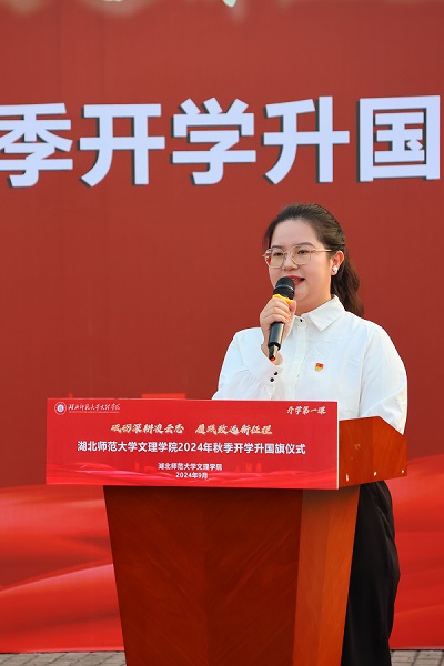 经管学部学生张燕作国旗下演讲。她号召青年一代以忠诚与奋斗为根基,将个人理想与国家命运紧密相连,在新时代的赛道上奋勇争先,贡献青春力量,追逐梦想,创造属于自己的辉煌未来。