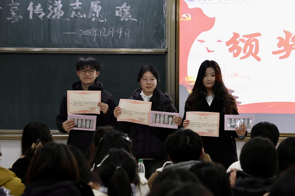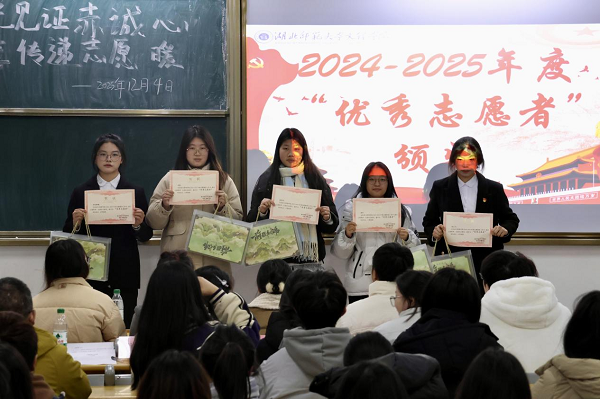 评审环节,学院综合多项考核结果,评选出本年度10名“优秀志愿者”,并颁发荣誉证书。他们以卓越的实践成果与无私的奉献精神,赢得现场师生的热烈掌声。