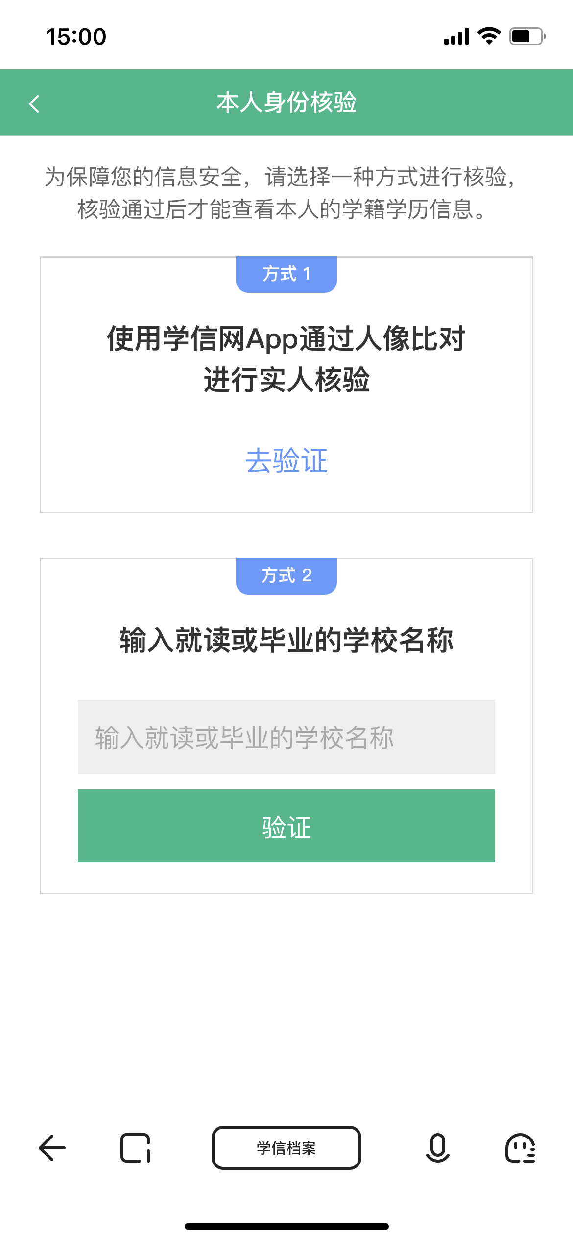 注册成功后,验证学校名称,查看高等教育信息: