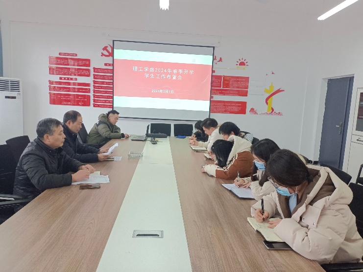 2024年3月1日下午,球友会官方网站理工学部在4#311会议室召开全体辅导员会议,学习传达学校2024年春季干部大会会议精神并部署新学期工作。会议由学工办副主任张弛老师主持,学部主任傅朝金、学部党总支副书记肖圣芳及全体辅导员参会。