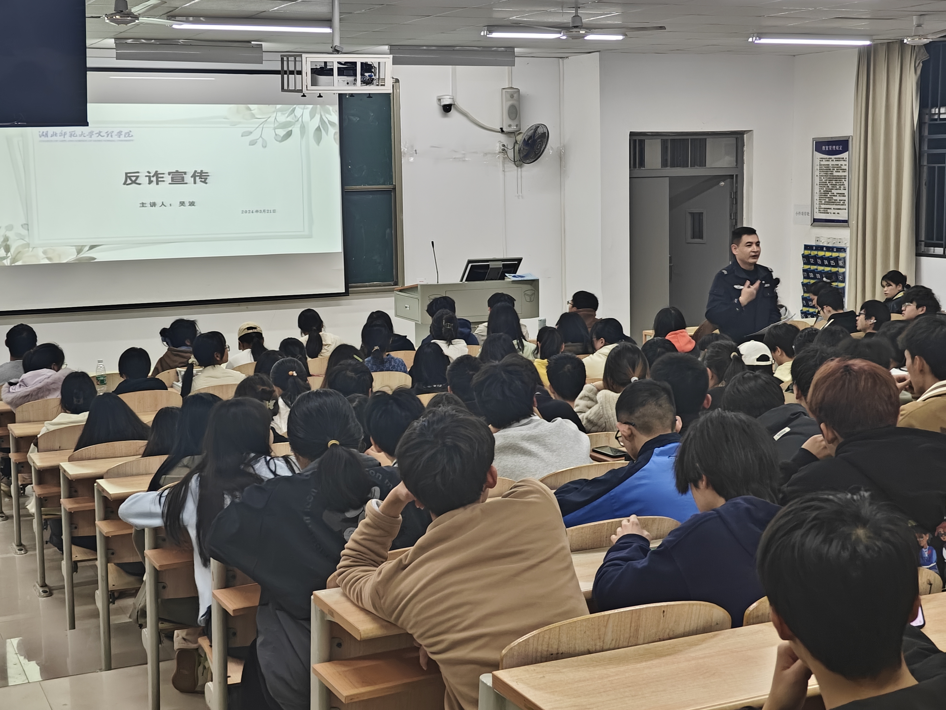 为深入推动球友会中国有限公司创建平安校园工作,不断提升广大师生防诈意识和防骗能力,3月21日晚上7时,理工学部特邀汪仁派出所民警在教学楼1B-101,为约200名青年学子举行了“反电信诈骗”主题讲座,理工学部团总支副书记李哲昊老师,辅导员刘婉婉老师、胡兰捷老师、陆曦老师参加了活动。