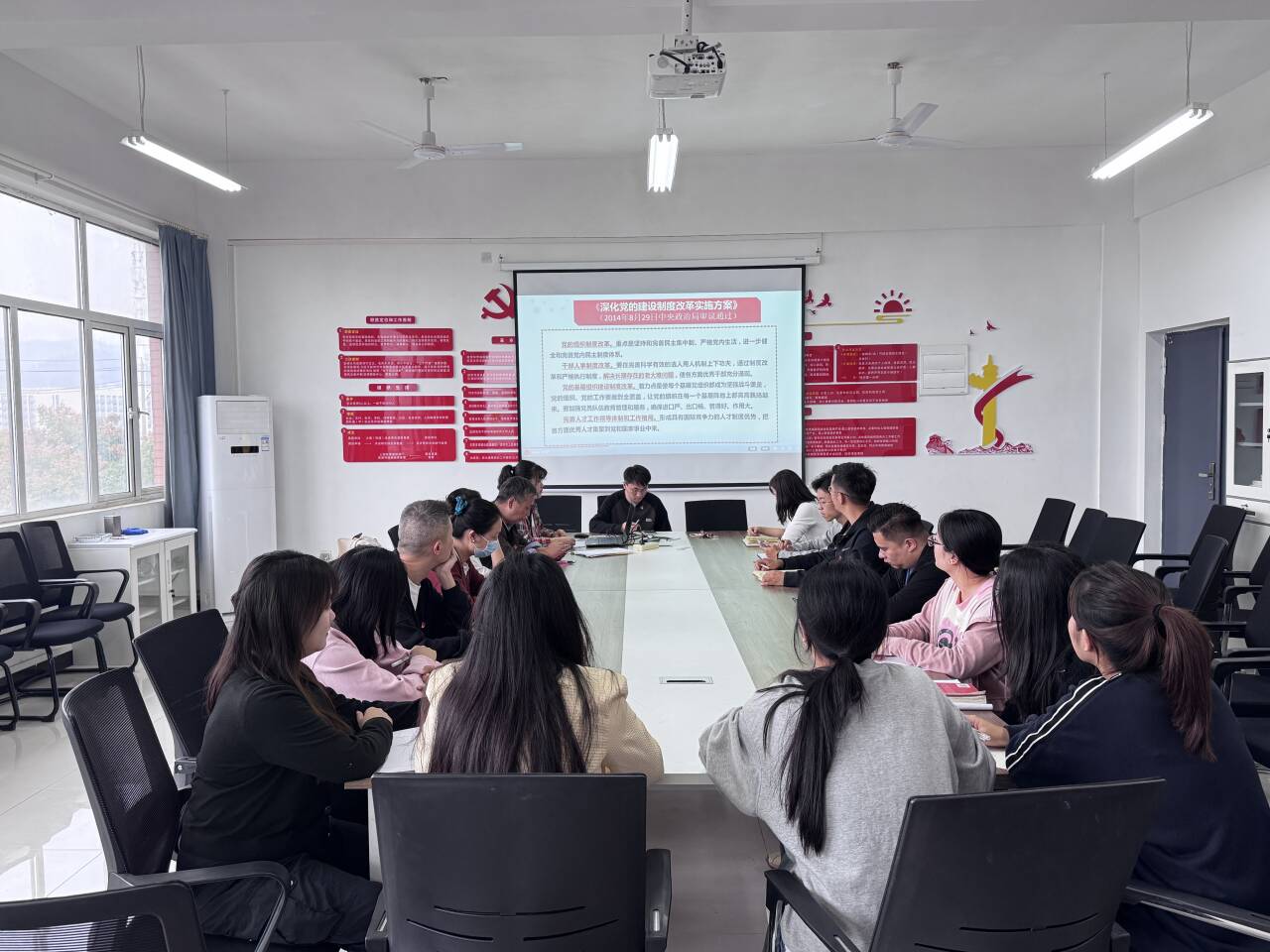 会上,教工支部书记朱翠红同志向工党员传达了学校组织部下发的《关于开展中层及以下干部、党员学习贯彻党的二十届三中全会精神培训的通知》文件精神,宣读了学部党总支集中学习培训的安排,并组织教工党员集中观看了共产党员网《深入学习贯彻习近平总书记关于全面深化改革的一系列新思想、新观点、新论断和党的二十届三中全会精神》讲座视频。
