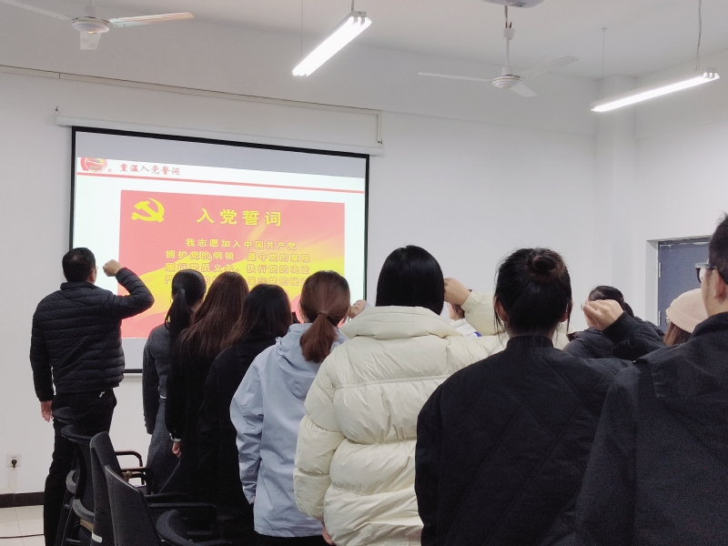 支部书记郭旭林带领接收的党员、预备党员同志进行入党宣誓。