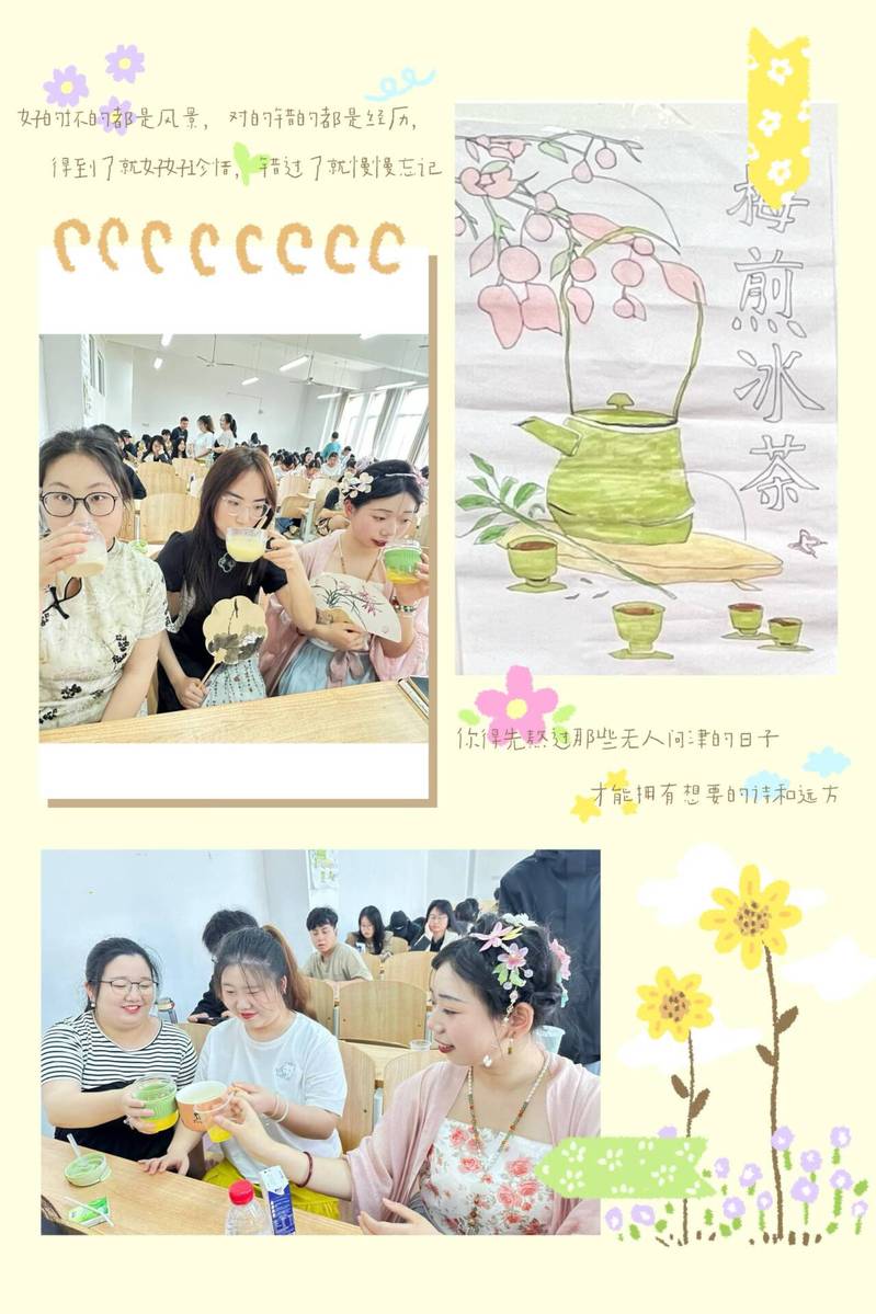 人文学部历史学23012302班于417日下午在教学楼2B304举办以“历”久弥新,与“史”同行为主题的教室快闪活动。活动分为自制与品尝宋代冰茶、diy掐丝珐琅画、爱国主义剧本杀南京1937、合唱《上春山》四个部分。