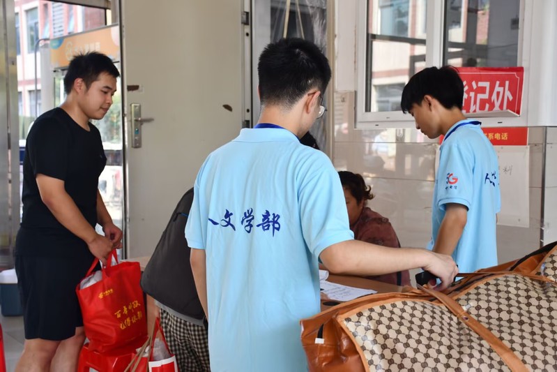 202491日上午,人文学部举办了专升本迎新见面会。此前,人文学部经过精心组织安排,圆满完成专升本迎新报道工作。迎新现场,志愿者们精心准备,井然有序地进行迎接新生的各项工作。他们将寝室钥匙等物资整齐摆放,并在整个迎新过程中分工明确,从新生报到、宿舍登记,到行李搬运和安置,志愿者们相互配合,使新生的报到过程顺畅和谐。从清晨到正午,新生在志愿者的帮助下完成了注册和入住宿舍的所有程序。