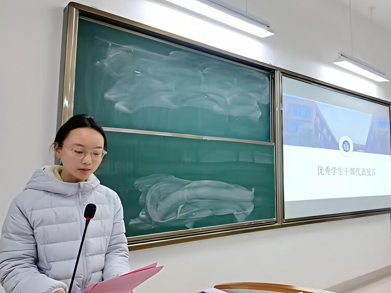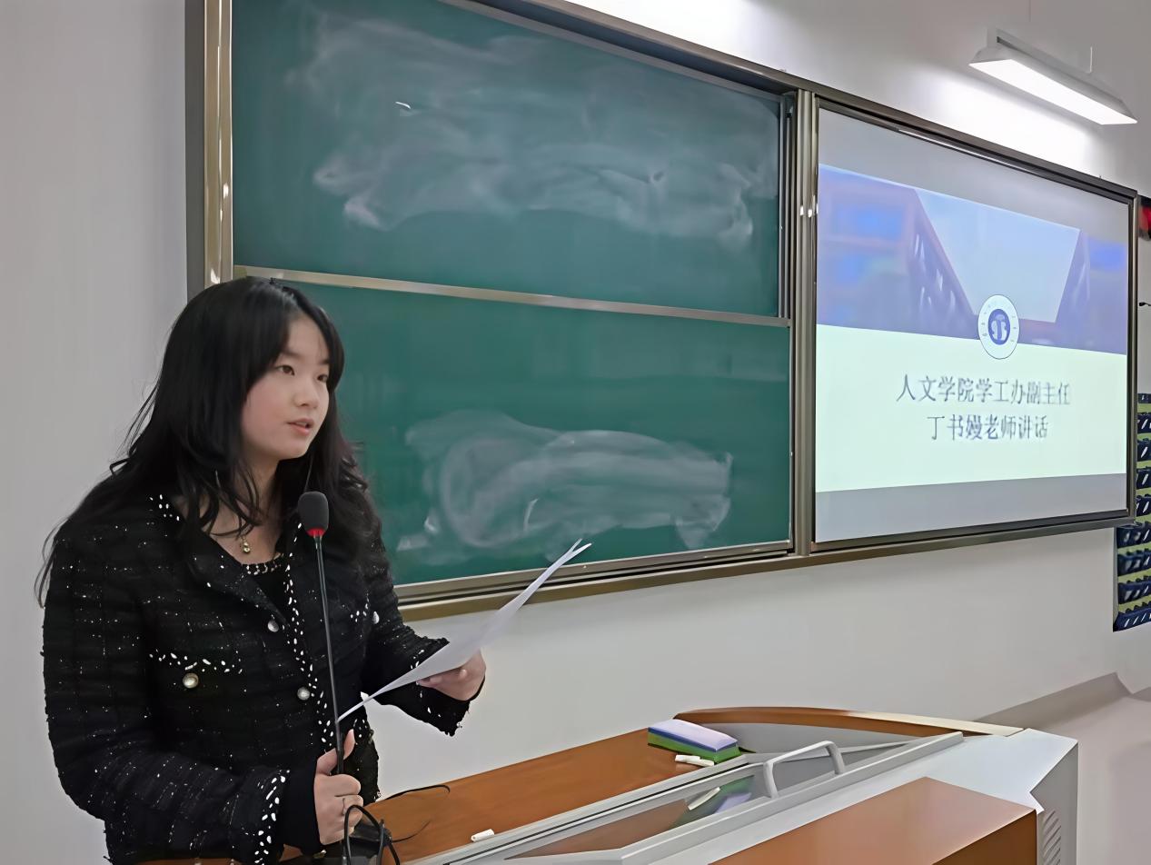 人文学院学工办主任丁书嫚针对课堂考勤、学业帮扶及学科竞赛参与等进行了详细阐述,建议班级组建学习互助小组,定期开展经验分享会,助力同学共同进步。