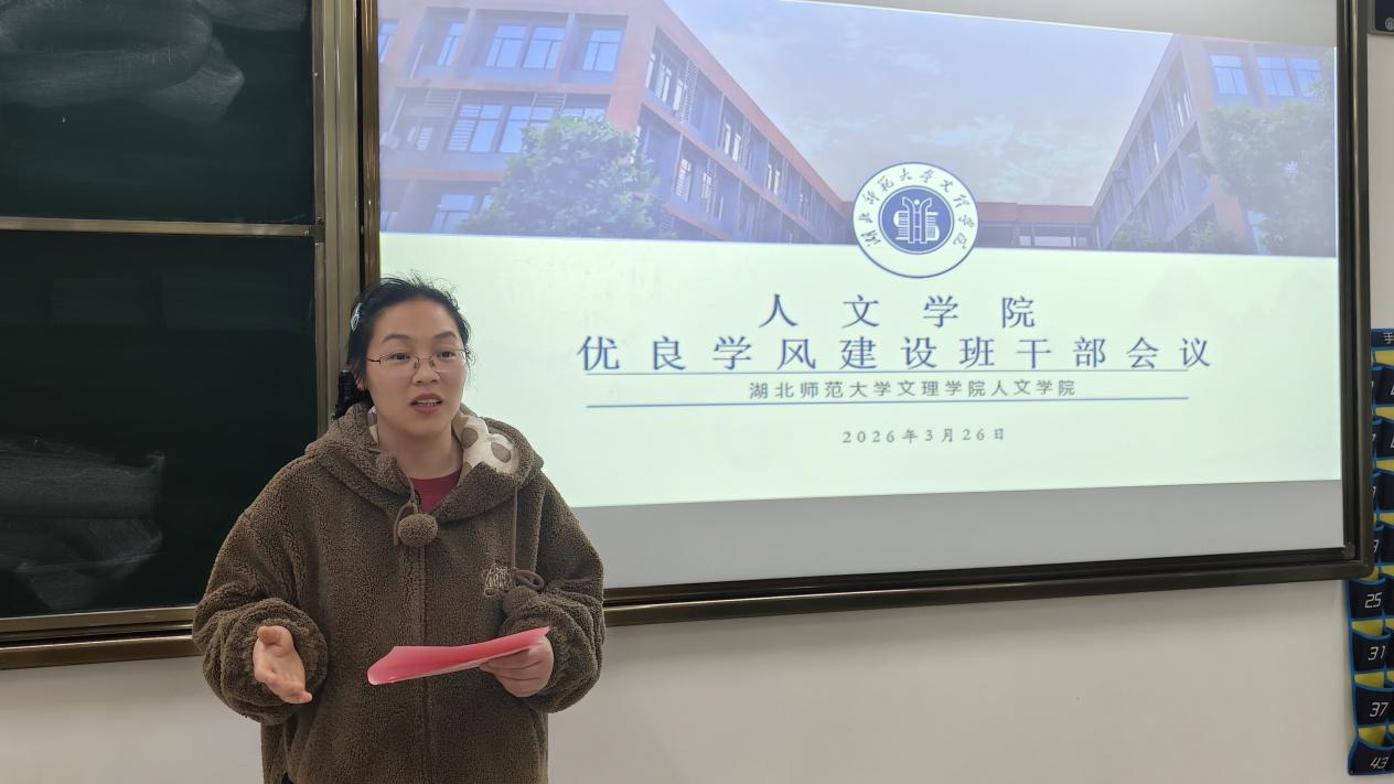 为进一步营造勤学善思、笃行进取的校园学习氛围,强化班干部的责任担当与先锋模范作用,2026326日,人文学院于3号教学楼105教室召开优良学风建设班干部专题会议。学院院长熊子延、党总支书记周景斌、团总支书记胡文玉,丁书嫚、柯婧琼、高悦等老师出席会议,全体班干部及学院团总支学生会主席团全体成员参会