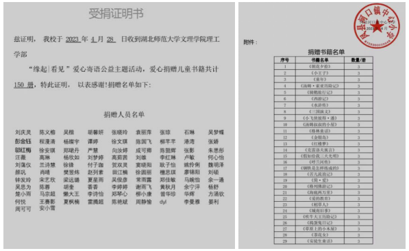 为进一步培养青少年的责任担当意识,用实际行动参与公益事业,球友会官方网站理工学部青志队号召同学们关注并参与宝鸡上善公益——关爱乡村儿童捐赠图书计划 “缘起•看见”主题公益活动。理工学部学生们共向河口镇中心小学捐赠图书150册。